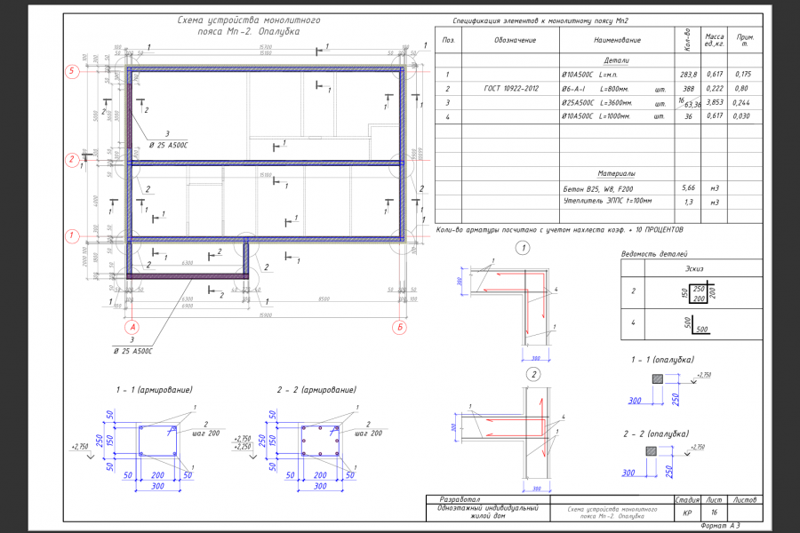 - Схема устройства монолитного пояса Мп-2. Опалубка