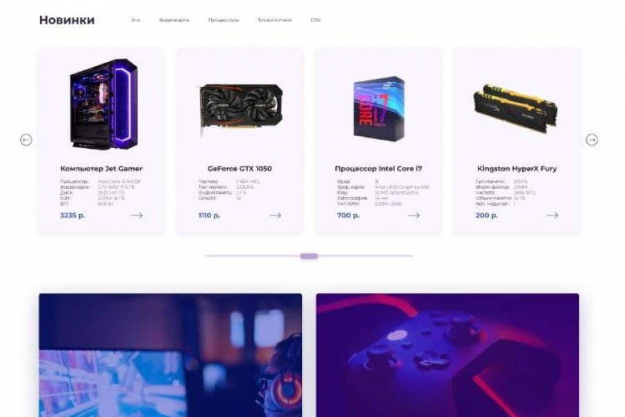 Готовый дизайн компьютерной, планшетной, мобильной версии интернет-магазина компьютерной, игровой тематики.