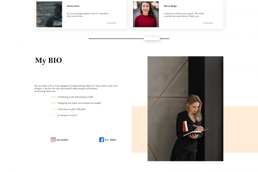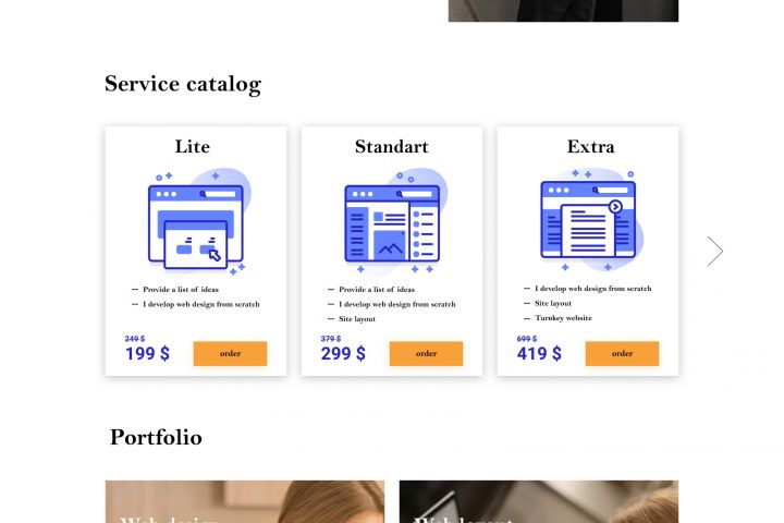 Продаю готовую страницу-портфолио. Все ваши графические материалы подставлю. При необходимости могу разработать также логотип и тексты