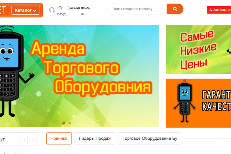 Шапка сайта при скролле (прокручивании) перемещается. Меню раскрывается при клике, не занимая дополнительного места в рабочей области сайта. На сайте есть сайдбар с удобным дополнительным навигационным меню. При наведении на товар блок выделяется контуром, а кнопка купить цветом. Конверсионная кнопка "Заказать звонок". Есть интересный, настраиваемый вывод товаров: «Новинки» и «Лидеры продаж».