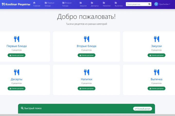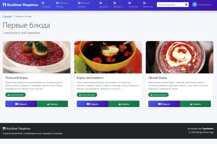 Готовый «Кулинарный портал» с парсингом и экспортом рецептов