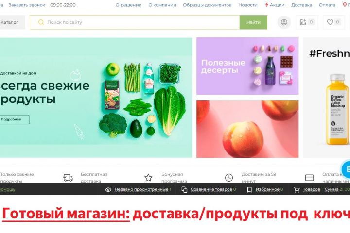 С помощью готового сайта вы сможете запустить интернет-магазин доставки еды, продуктов питания, бытовых товаров, товаров повседневного и это лишь малая часть.