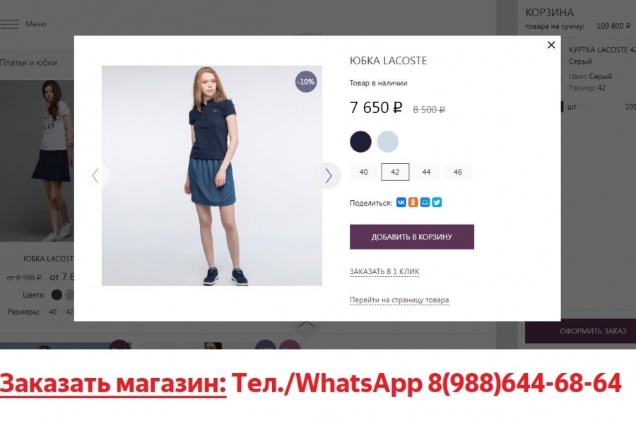 С помощью готового сайта вы сможете запустить интернет-магазин одежды и аксессуаров.