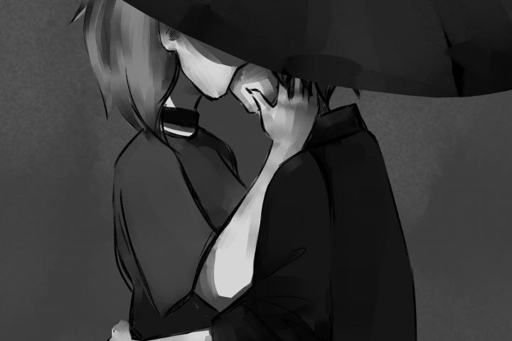 Графическая чёрно-белая иллюстрация молодых людей