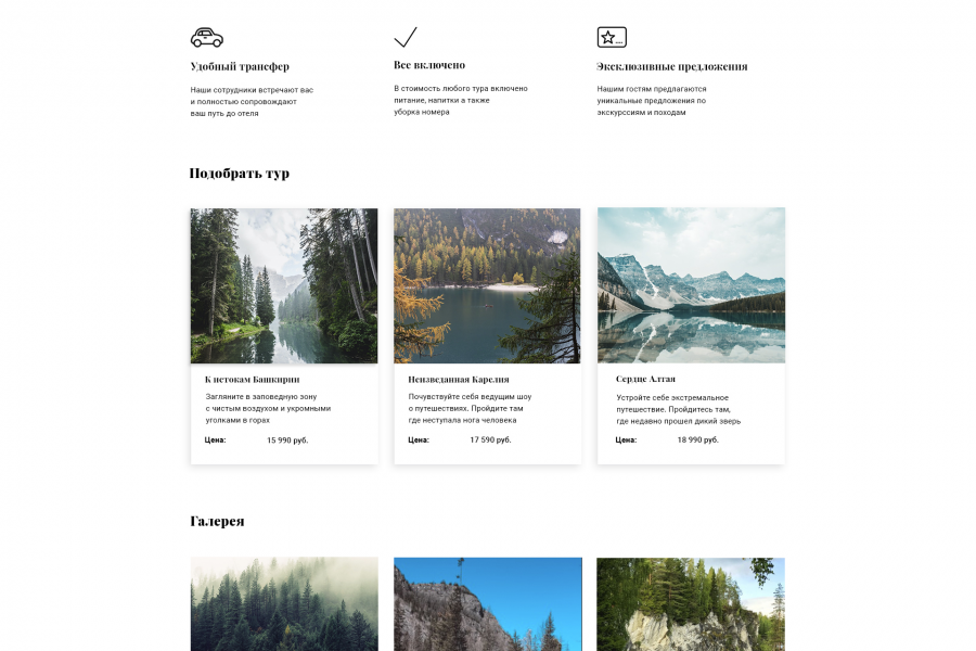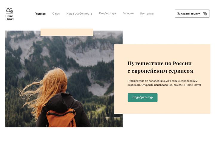 Минималистичный, воздушный и современный проект для компании занимающейся путешествиями по России. Проект выполнен в натуральных цветах, которые прекрасно сочетаются друг с другом. Первые 6 правок - бесплатно, последующие - 1 правка/500 руб.