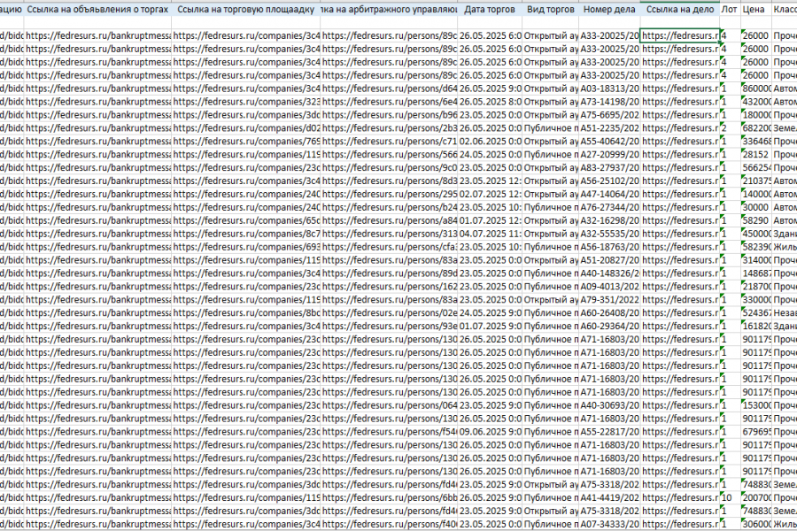 Продаю: ресурс fedresurs - парсер должников и лотов продажи имущества