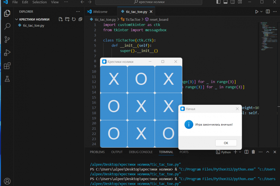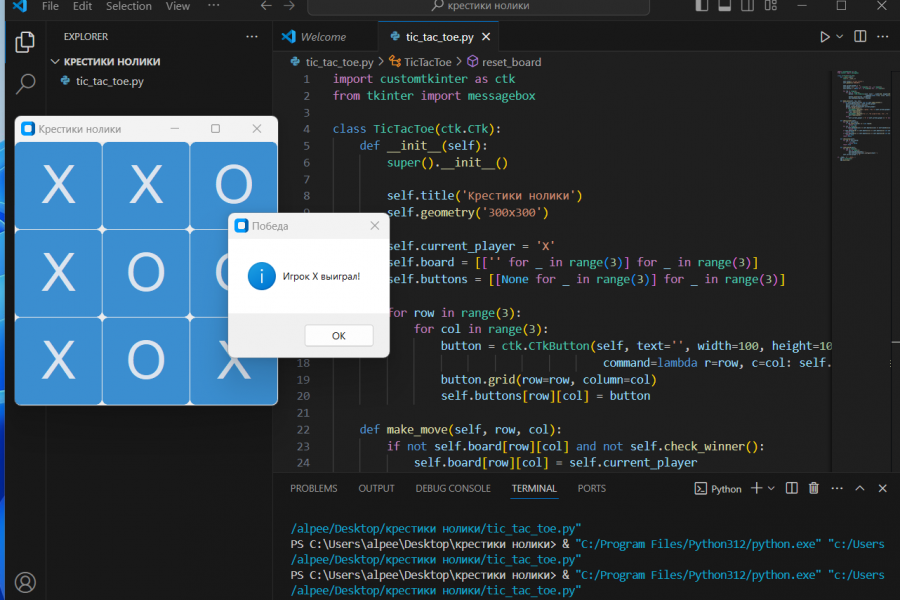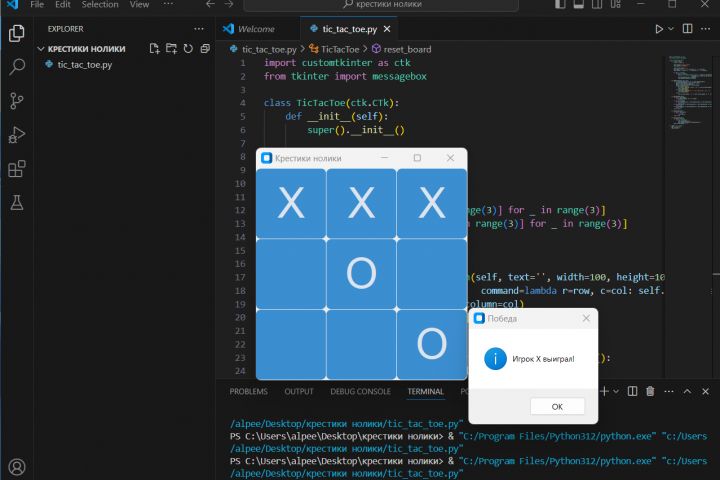Продаю: Игра крестики нолики на python - готовая работа на продажу :12282