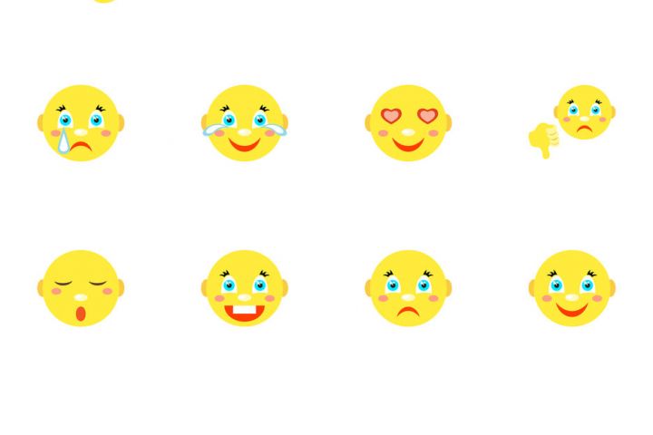 Комплект из 16 иконок смайликов нейтральных, классических, выражающих различные эмоции. Векторное изображение, исходники в AI, EPS. Стоимость указана за 1 иконку