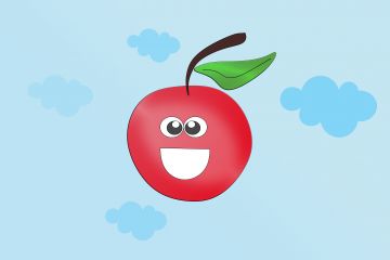 Иллюстрация - яблоко с облаками на голубом фоне.