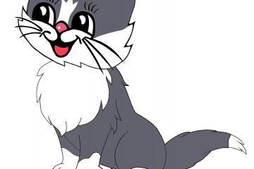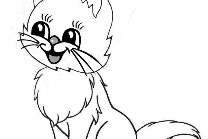 Кошка в цветном и чёрно-белом испольнении.Мультяшный стиль