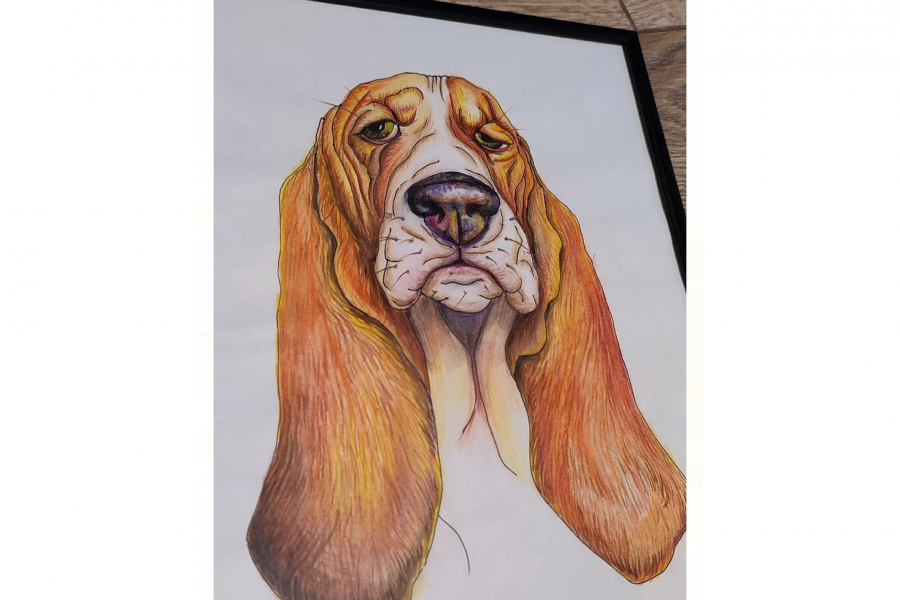 "Взгляд умиротворения" - иллюстрация с бассет-хаундом, созданная акварелью и карандашами. Вдохновением послужил спокойный и понимающий взгляд собаки . Использовала мягкие оттенки, чтобы передать его теплоту. Эта иллюстрация напоминает о благотворном влиянии собачьей верности и покоя.