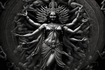 Продаю: индуистский бог черно-белый черный фон порог много оружия