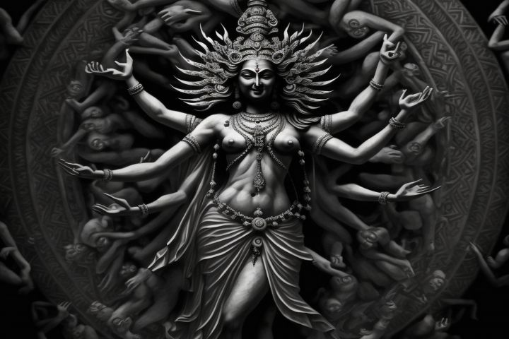 Продаю: индуистский бог черно-белый черный фон порог много оружия - готовая работа на продажу :8399
