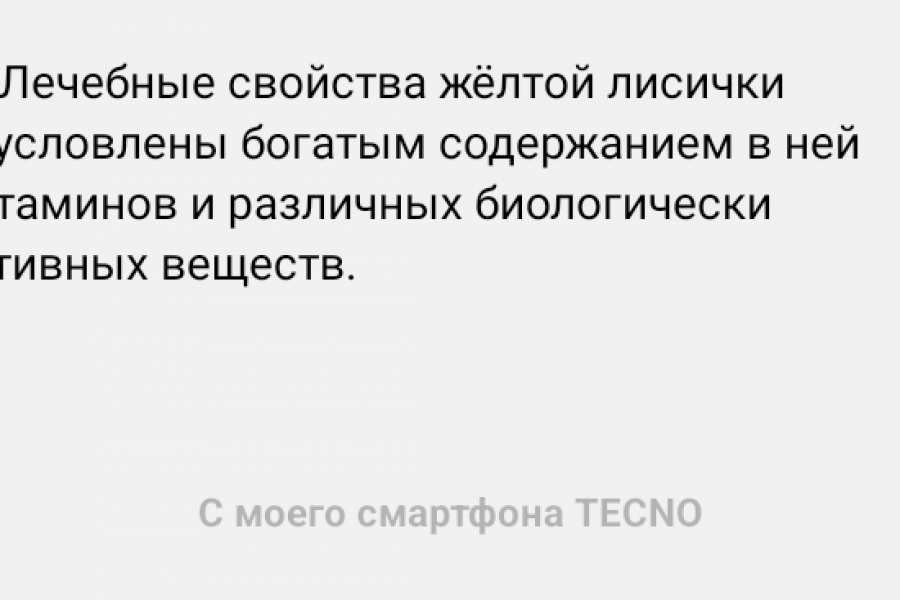 В этой статье рассказывается об уникальных свойствах жёлтой лисички - съедобного и лечебного гриба. Всего 1788 знаков. 1568 знаков без пробелов. Уникальность 99%.