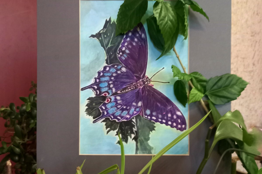 Интерьерная картина. Бумага, акрил. Размер 36 см Х 44,5 см (с паспарту) Могу нарисовать в пару любую другую бабочку по вашему выбору