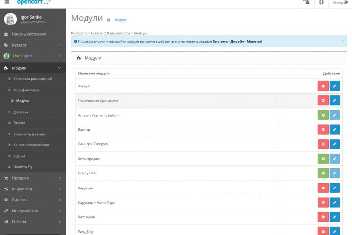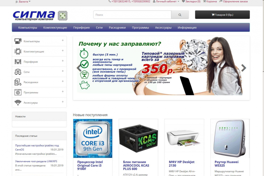 Рабочий вариант магазина на Opencart 2 для продажи товаров компьютерной тематики.