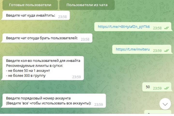 Подробная инструкция в видео: https://mediaholl.com/video/36/invajt-bot-telegram