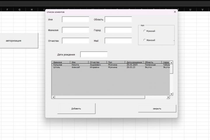 с помощью форм и макросов были созданы автозаполнения таких листов как "Список продуктов", "Список клиентов", "Список сотрудников", "Заказы"