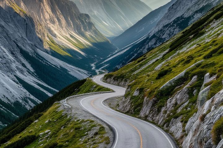 Вдохновляющее и атмосферное изображение дороги, уходящей в направлении величественных гор. Изображение создано нейросетью с высоким уровнем детализации, идеально передаёт чувство простора, свободы и путешествия. Визуал отлично подходит для использования в туристической рекламе, оформления постов в социальных сетях, полиграфии, постеров, обложек, блогов о путешествиях и для создания мотивирующих визуалов с природной тематикой