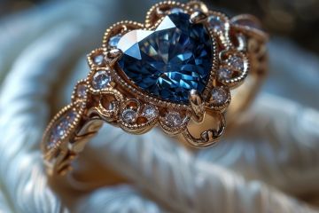 Великолепное изображение ювелирного кольца «Сердце океана» с большим сердцевидным голубым камнем, окружённым сверкающими бриллиантами Детализированный визуал подчёркивает глубину цвета и изысканность дизайна, идеально подходит для рекламы ювелирных изделий, презентаций коллекций, визуалов в социальных сетях и интернет-магазинах Создано нейросетью, это изображение передаёт элегантность, роскошь и магию океанской стихии