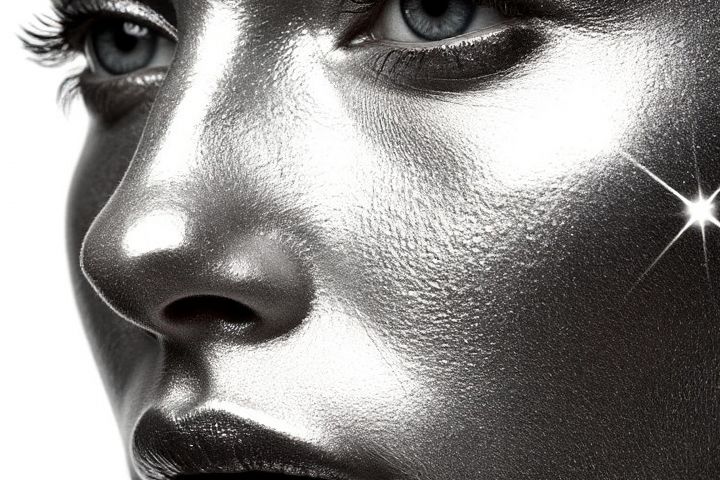 Стильное и выразительное изображение серебряного лица девушки, выполненное с высоким уровнем детализации и глянцевым металлическим эффектом. Визуал прекрасно подойдёт для рекламы оформления современных дизайнерских проектов, постов в социальных сетях, обложек, постеров, а также для использования в индустрии моды и бьюти-сегменте. Изображение создано нейросетью и идеально передаёт сочетание футуристичности и элегантности.