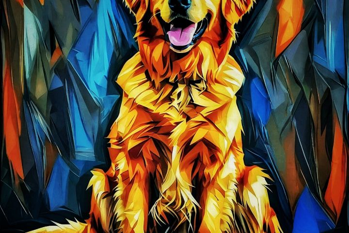 Изображение золотистого ретривера в стиле "Кубизм". В работе использованы нейросети, графические редакторы