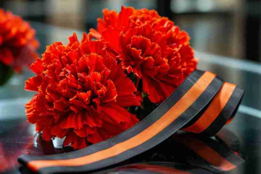Изображение георгиевской ленты и гвоздики, посвящено Году защитника Отечества, 80-летию Победы и вообще Победе в Великой отечественной войне