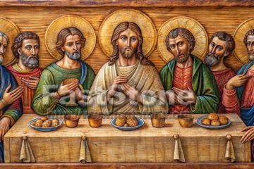 На картине "Тайная вечеря" изображены Иисус Христос и его ученики, сидящие за столом. Иисус обращается к ученикам с важным посланием перед предстоящим распятием. Ученики выглядят удивленными и встревоженными, пытаясь понять смысл слов Учителя.