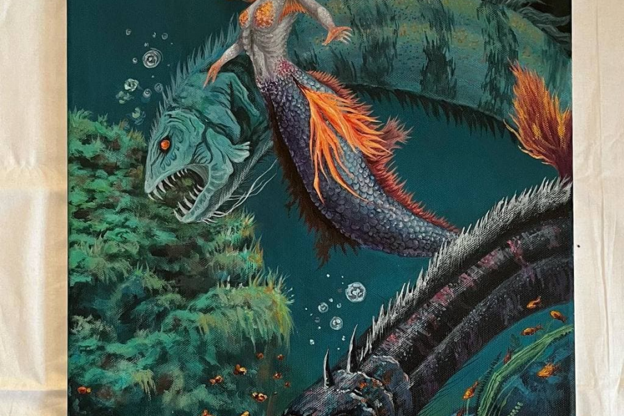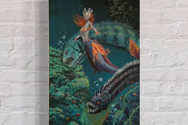 Авторская картина на холсте "Русалка и мурены" Материалы: Акрил, холст на подрамнике Размеры: 55*38 Год создания: 2022