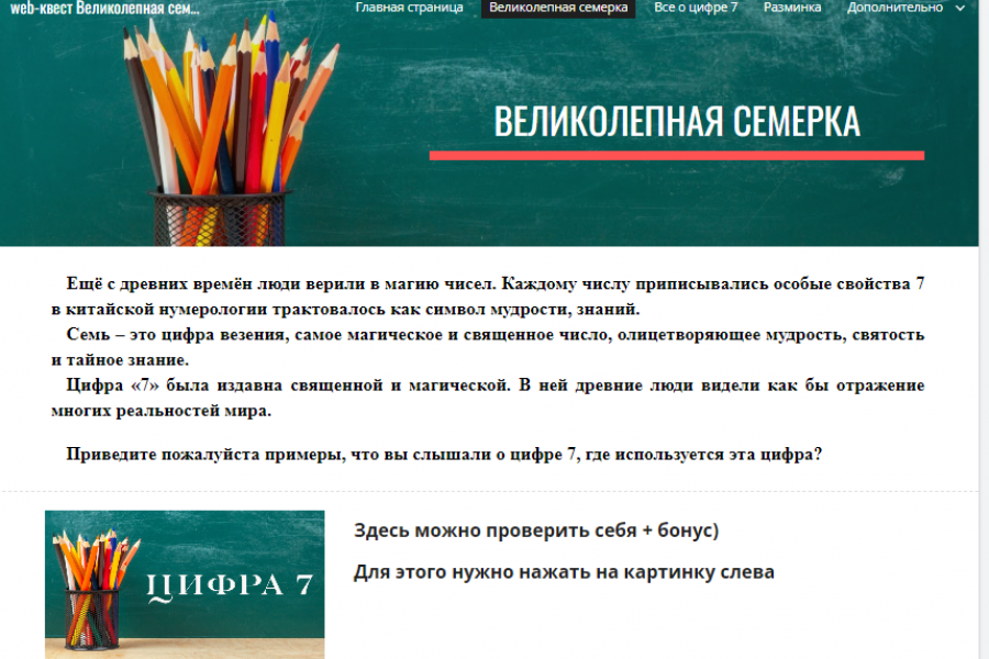 Готовый классный час "Великолепная семерка", прилагается к сценарию мероприятия интерактивная игра. Актуальна к 1 сентября.