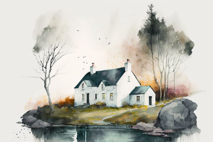 Акварель, пейзаж, минимализм, png, 1024х1024