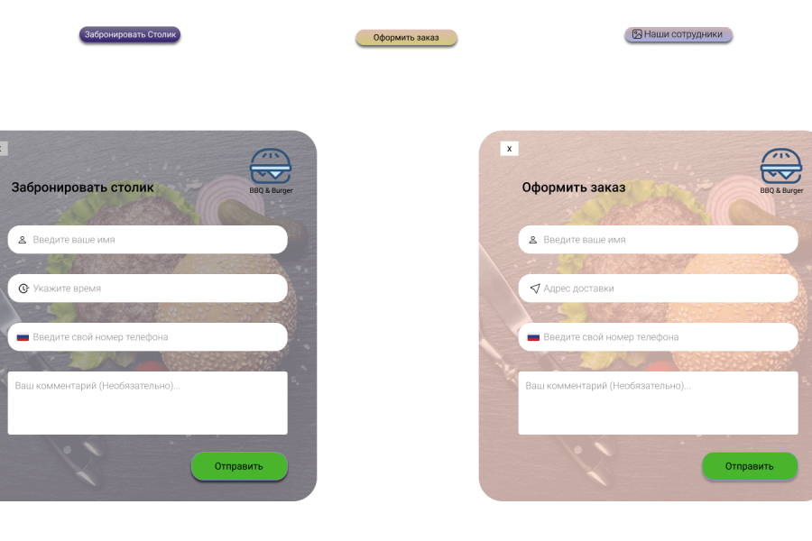 Концепт Дизайн сайта продажи бургеров и BBQ с возможностью забронировать столик или оформить доставку через сайт. Доработки будут оговариваться по вашему желанию и вашим предпочтениям. Посмотреть демо можно по ссылке: https://www.behance.net/gallery/118069557/Concept-Landing-Page-BBQ-Burger