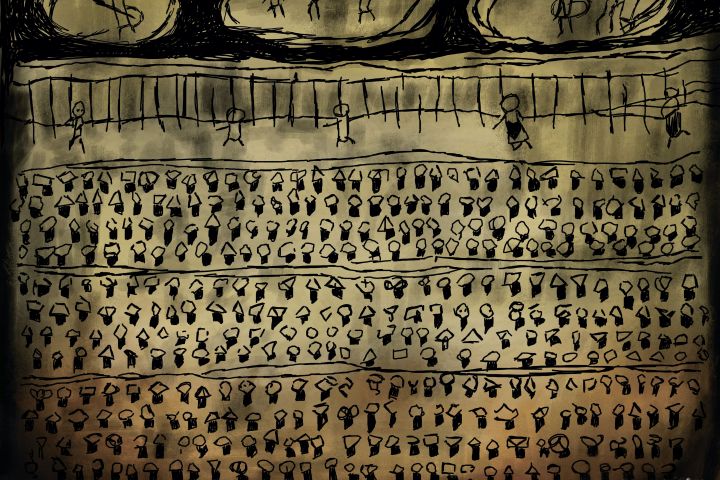 Диджитал плакат-копия картины "436 people at a performance" из локации подвала тюрьмы, "Silent Hill 2 Remake" для последующей печати.