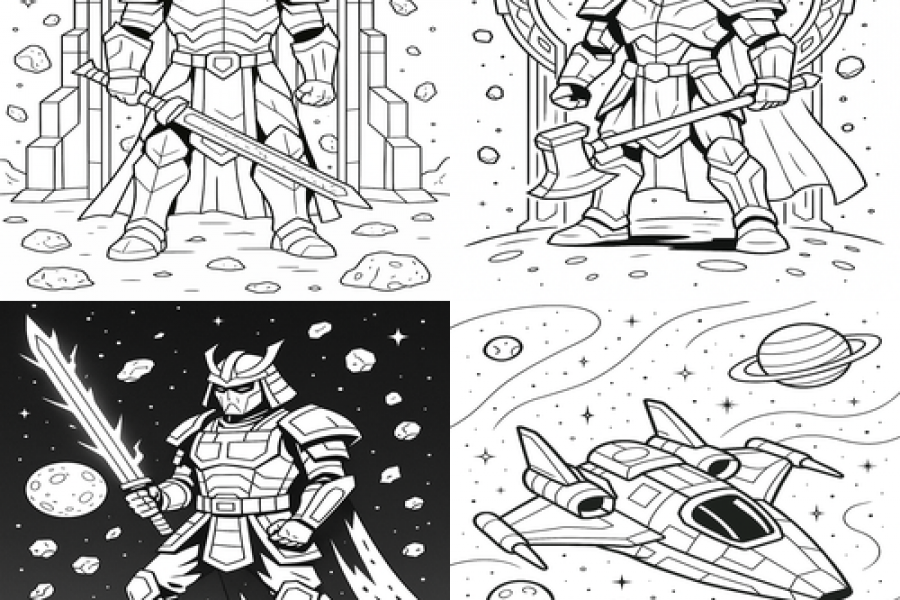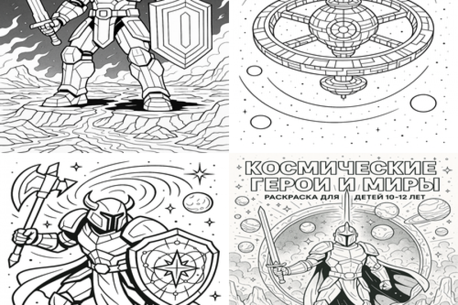 Серия «Космические герои и миры» Стандарт — 10 раскрасок (A4, PNG) — 900 ₽ + бонус 2 дополнительные раскраски по теме