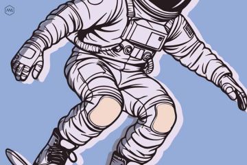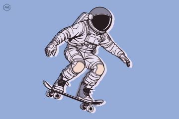 Графика. Изображение космонавта на скейтборде.