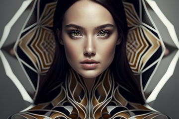 Красивое симметричное лицо МОДЕЛЬ ::5 ОДЕЖДА Платье из гламурного геометрического прозрачного предмета ::4 ультрареализм, 8k, радужный, очень высокое качество