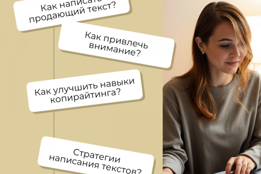 Если вы хотите научиться создавать тексты, которые привлекают внимание и вызывают желание купить, этот курс для вас! Мы научим вас основным принципам копирайтинга, поможем развить навыки написания эффективных текстов и покажем, как зарабатывать на этом. От теории до практики — всё, что нужно для старта карьеры копирайтера.
