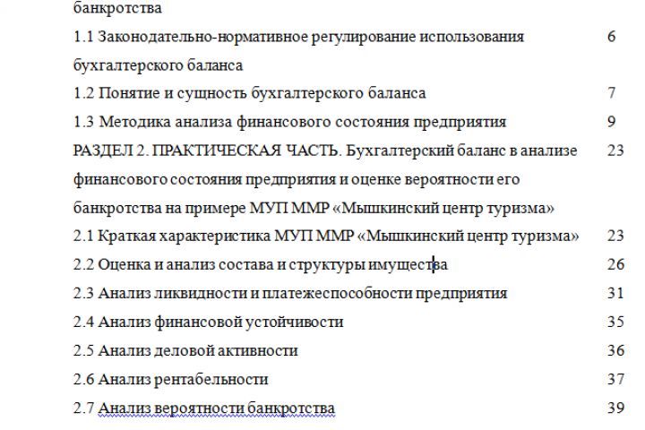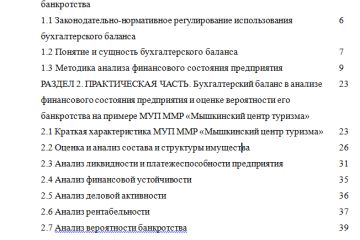 «Бухгалтерский баланс в анализе финансового состояния предприятия и оценке вероятности его банкротства на примере МУП ММР «Мышкинский центр туризма»