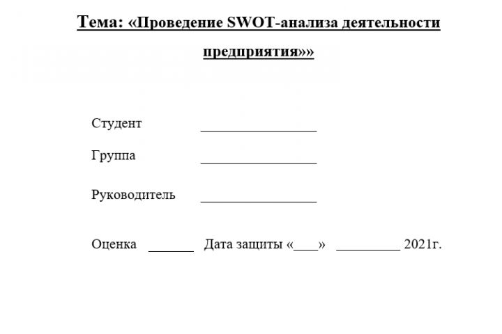 Актуальность темы данной курсовой работы обуславливается тем, что состояние организации зависит напрямую от того, как эффективно и оперативно она способна использовать свои ресурсы для противодействия угрозам, а также укрепления позиции на рынке с помощью возможностей.