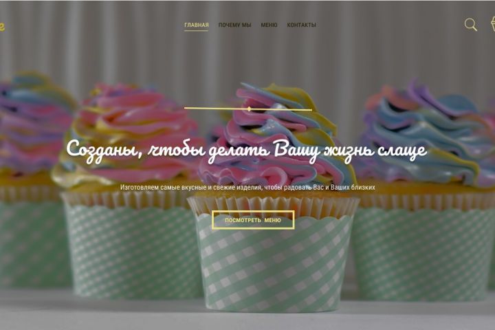 Современный дизайн одностраничного сайта для кондитерской. Сайт выполнен в стиле минимализм, дизайн дышит, цвета радуют глаз.