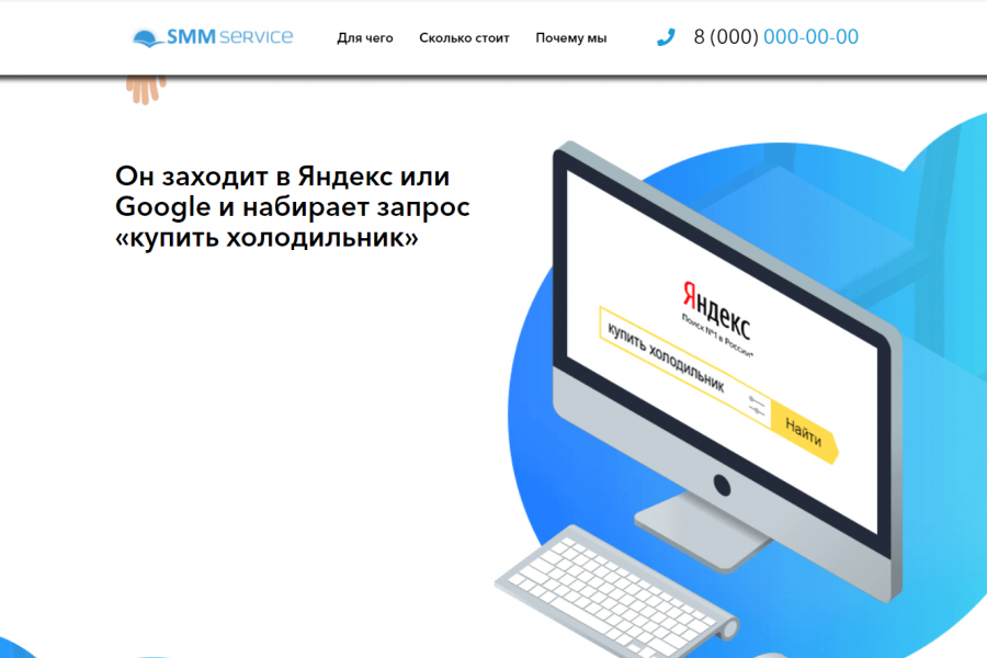 Готовый одностраничник для специалистов, занимающихся настройкой контекстной рекламы.