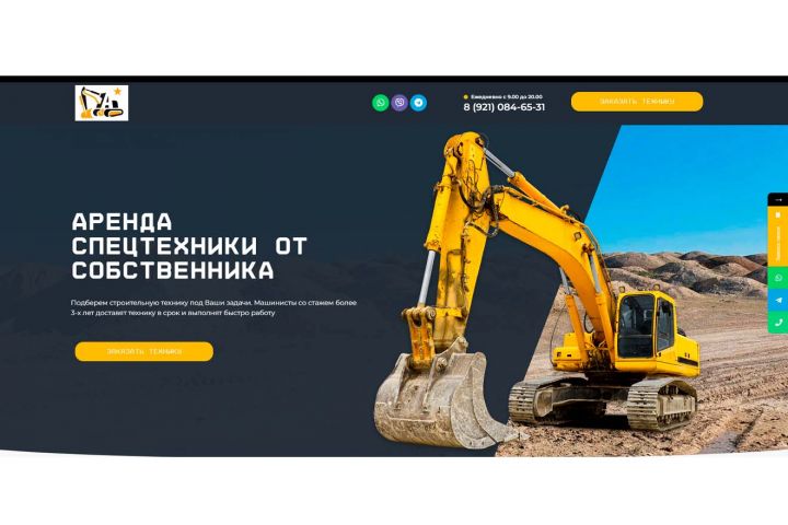Лэндинг "Аренда спецтехники". Шаблон легко редактируется без знания программирования, имеет адаптированную верстку, можно изменить любое изображение, заголовок, описание , все меняется и редактируется, дополняется, удаляется.