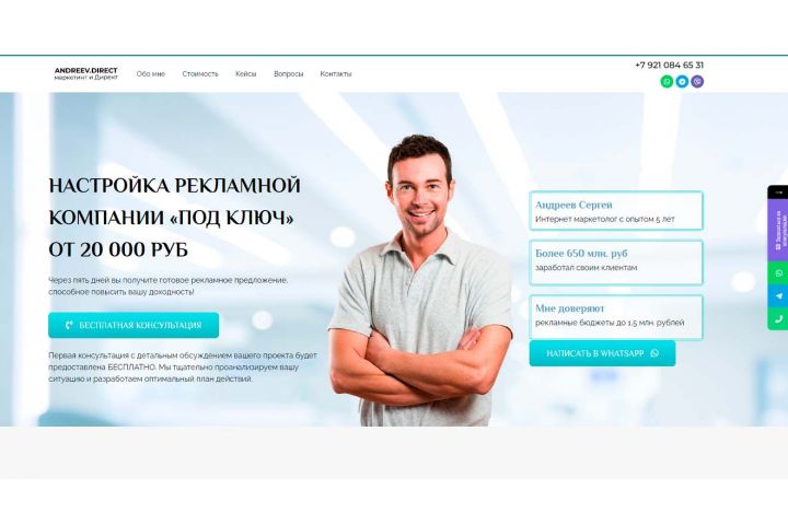 Лэндинг "Директолог. Настройка Яндекс Директа". Шаблон имеет адаптированную верстку, легко редактируется без знания программирования, можно изменить любой фотографию, заголовок, текст , все меняется и редактируется, дополняется, удаляется.