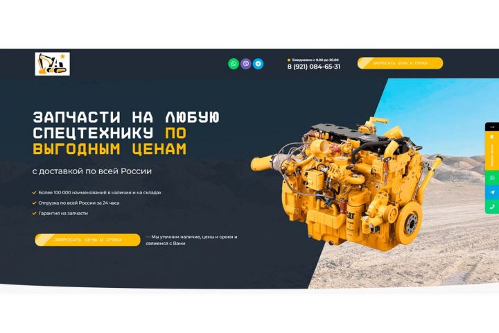 Лэндинг "Запчасти для спецтехники". Шаблон легко редактируется без знания программирования, имеет адаптированную верстку, можно изменить любой заголовок, картинку, описание , все меняется и редактируется, дополняется, удаляется.