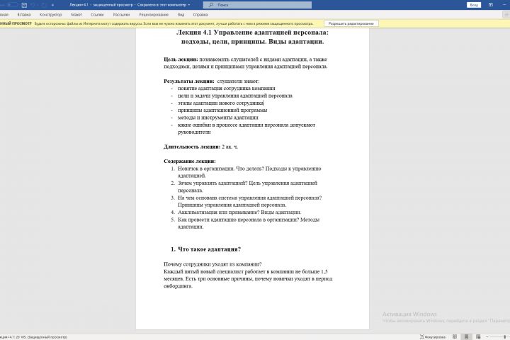 Цель лекции: познакомить слушателей с видами адаптации, а также подходами, целями и принципами управления адаптацией персонала.