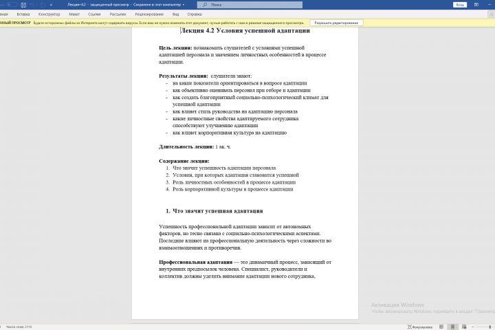 Цель лекции: познакомить слушателей с условиями успешной адаптацией персонала и значением личностных особенностей в процессе адаптации.