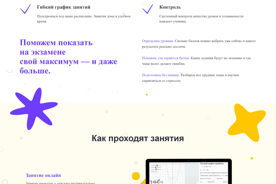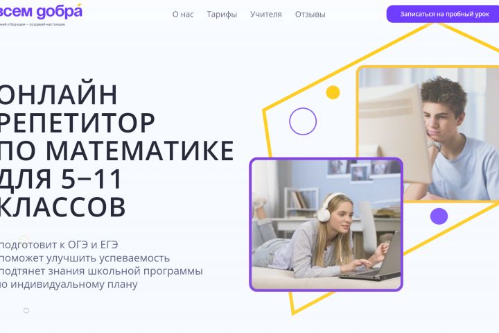 Лендинг для онлайн школы под услуги репетитора по математике.