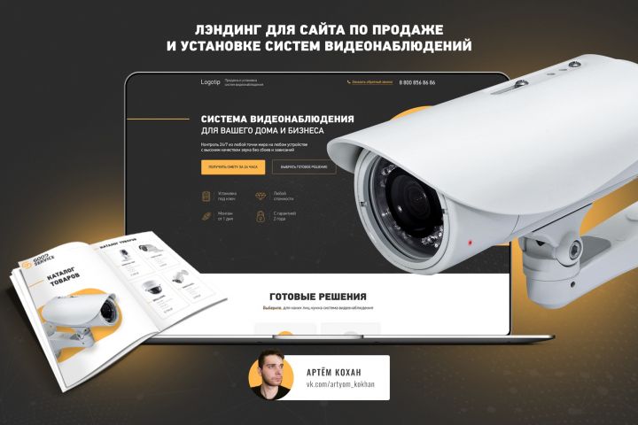 Уже полностью готовый сайт под ключ. 1. Продающий прототип 2. Уникальный дизайн 3. Адаптивная верстка Ссылка на весь проект https://freelance.ru/kokhan.artyom/prodazha-i-ustanovka-sistem-videonablyudeniya-3859005.html