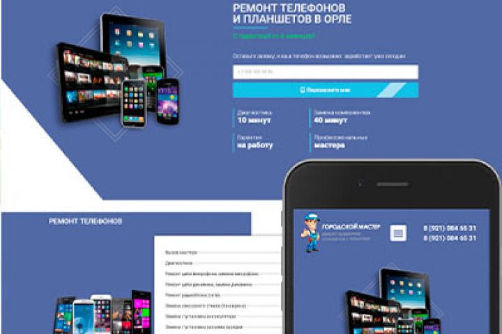 Если Вы хотите найти клиентов на ремонт телефонов и планшетов, то этот лендинг будет отличным выбором