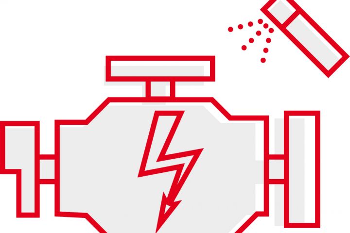 Иконки выполнены тонкими красными линиями с бледно-серым фоновым элементом.